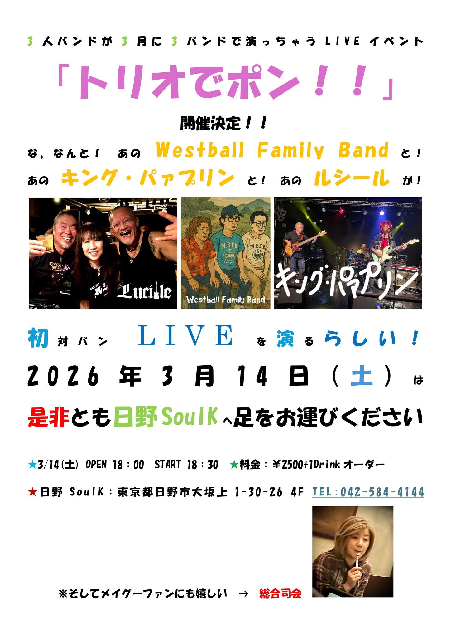 ・Open 18:30 ・Start 19:00 ・終了22:30